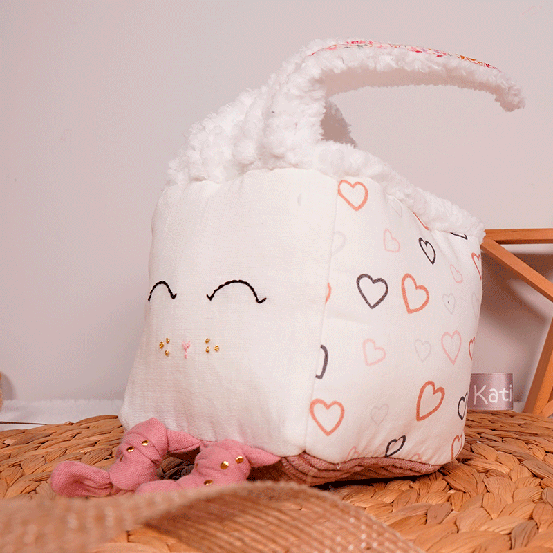 Plongez dans un monde de découverte sensorielle avec notre adorable Cube d’Éveil pour Bébé. Ce cube d’éveil polyvalent est parfait pour stimuler les sens de votre tout-petit tout en favorisant son développement cognitif et sensoriel. Le visage doux et amical brodé à la main sur le cube engage bébé dans des jeux interactifs et encourage le développement des compétences sociales et émotionnelles. L’une des oreilles contient du papier bruissant offrant ainsi une expérience tactile et auditive surprenante.